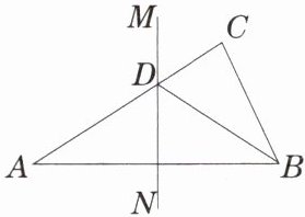 3. 如图,在$\triangle ABC$中,$\angle C = 90^{\circ}$,$AC = 8\ cm$,$AB的垂直平分线MN交AC于D$,连接$BD$,若$\cos \angle BDC = \frac{3}{5}$,则$BC$的长是(