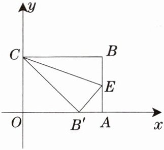 (2)将纸片翻折后,点B恰好落在x轴上的B'点,CE为折痕,$\therefore\triangle CBE\cong\triangle CB'E$,故$BE=B'E$,$CB'=CB=OA$,由勾股定理得$CB'=\sqrt{OB'^{2}+OC^{2}}=15$.
