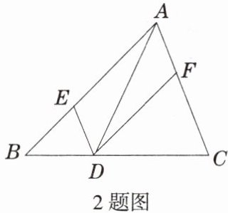 2. 如图,在 $\triangle ABC$ 中,点 $D$,$E$,$F$ 分别在 $BC$,$AB$,$CA$ 上,且 $DE// CA$,$DF// BA$,则下列三种说法: