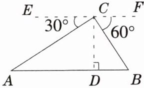 解:由已知,得∠ECA=30°,∠FCB=60°,CD=90,EF//AB,CD⊥AB于点D,