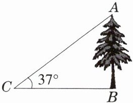 5. 如图,在一次数学课外实践活动中,小文在点$C处测得树的顶端A的仰角为37^{\circ}$,$BC为20m$,求树高$AB$。(参考数据:$\sin 37^{\circ}\approx0.60$,$\cos 37^{\circ}\approx0.80$,$\tan 37^{\circ}\approx0.75$)
