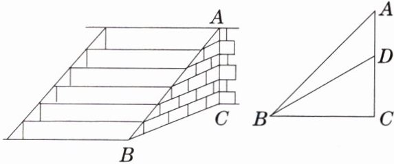3. 某村决定将河边一台阶进行改造。在如图的台阶横断面中,将坡面$AB的坡角由45^{\circ}减至30^{\circ}$。已知原坡面的长为$6m$($BC$所在地面为水平面)。