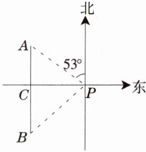 ∴PC = PA·sin53°≈100×0.8 = 80(海里)