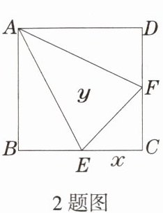 2. 如图,在正方形 $ ABCD $ 中,$ E $ 是 $ BC $ 边上的点,$ F $ 是 $ CD $ 边上的点,且 $ AE = AF $,$ AB = 4 $,设 $ \triangle AEF $ 的面积为 $ y $,$ EC $ 的长为 $ x $,则 $ \triangle AEF $ 的面积最大为