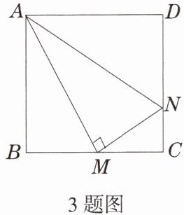 3. 如图,正方形 $ ABCD $ 的边长为 $ 1 \, cm $,$ M $,$ N $ 分别是 $ BC $,$ CD $ 上两个动点,且始终保持 $ AM \perp MN $,当 $ BM = $____