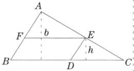 5. 已知 $ \triangle ABC $ 的面积为 $ 2400 \, cm^2 $,底边 $ BC $ 长为 $ 80 \, cm $. 若点 $ D $ 在 $ BC $ 边上,$ E $ 在 $ AC $ 边上,$ F $ 在 $ AB $ 边上,且四边形 $ BDEF $ 为平行四边形,设 $ BD = x \, cm $,$ S_{□ BDEF} = y \, cm^2 $,求:
