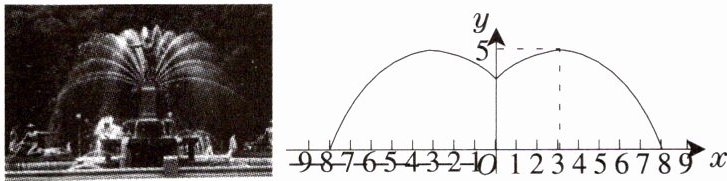 7. 某游乐园有一个直径为 $ 16 $ 米的圆形喷水池,喷水池的周边有一圈喷水头,喷出的水柱为抛物线,在距水池中心 $ 3 $ 米处达到最高,高度为 $ 5 $ 米,且各方向喷出的水柱恰好在喷水池中心的装饰物处汇合. 如图所示,以水平方向为 $ x $ 轴,喷水池中心为原点建立直角坐标系.