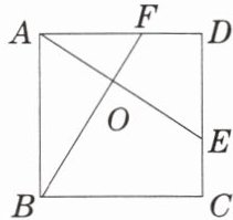 2. 如图,$E$,$F$ 分别是正方形 $ABCD$ 的边 $CD$,$AD$ 上的点,且 $CE = DF$,$AE$,$BF$ 交于点 $O$,下列结论:① $AE = BF$;② $AE\perp BF$;③ $AO = OE$;④ $S_{\triangle AOB}= S_{四边形DEOF}$。其中,错误的有(