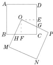 ∴$S_{四边形OHCG}=S_{四边形OECF}=25$,即两个正方形重叠部分的面积为 25.
