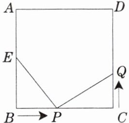 2. 如图,已知在正方形$ABCD$中,$AB = 10$厘米,点$E在边AB$上,且$AE = 4$厘米,如果点$P在线段BC上以2$厘米/秒的速度由$B点向C$点运动,同时,点$Q在线段CD上由C点向D$点运动,设运动时间为$t$秒,当$\triangle BPE与\triangle CQP$全等时,$t$的值为(