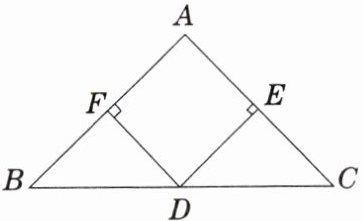 5. 如图,$D是\triangle ABC的边BC$上的中点,$DE\perp AC$,$DF\perp AB$,垂足分别是$E$,$F$,且$BF= CE$.