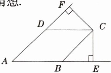7. 如图,四边形 $ABCD$ 是菱形,$CE \perp AB$ 交 $AB$ 的延长线于点 $E$,$CF \perp AD$ 交 $AD$ 的延长线于点 $F$,请你猜想 $CE$ 与 $CF$ 有什么数量关系?并证明你的猜想。