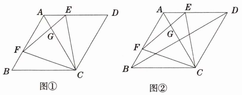 (2)当 $E,F$ 分别在线段 $AD$ 和 $AB$ 上时,如图②所示,求证:$\triangle EFC$ 是等边三角形。