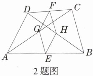 2. 如图, 已知在四边形$ABCD$中,$AD = BC$,点$E,F,G,H分别是AB,CD,AC,BD$的中点,四边形$EHFG$是