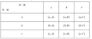 $解:(1)设第一题的三个选项分别为a,b,c;$