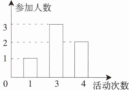 根据统计图,参加$1$次的有$1$人,参加$3$次的有$3$人,参加$4$次的有$2$人。
