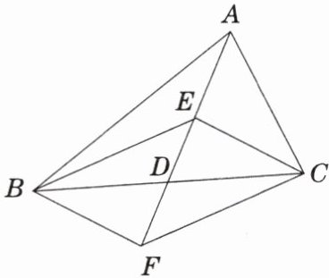 5. 如图,在 $\triangle ABC$ 中,$D$ 是 $BC$ 边的中点,$E$、$F$ 分别在 $AD$ 及其延长线上,$CE // BF$,连接 $BE$,$CF$.