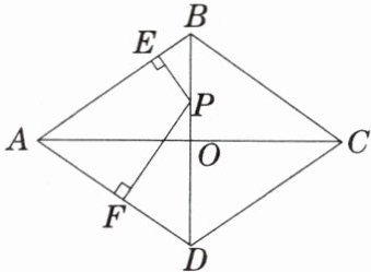 4. 如图,菱形ABCD的对角线AC,BD相交于点O,点P是对角线BD上一点,过点P分别作PE⊥AB,PF⊥AD,垂足分别是点E,F,若OA=4,$S_{菱形ABCD}$=24,则PE+PF 的长为().
