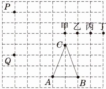 2. 如图,若$A$,$B$,$C$,$P$,$Q$,甲、乙、丙、丁都是方格纸中的格点,为使$\triangle ABC\backsim\triangle PQR$,则点$R$应是甲、乙、丙、丁四点中的(
