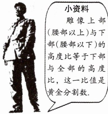 4. 某中学准备在校园内建造一座高2 m的雷锋人体雕像,向全体师生征集设计方案.小兵同学查阅了有关资料,了解到黄金分割数常用于人体雕像的设计中.上图是小兵同学根据黄金分割数设计的雷锋人体雕像的方案,其中雷锋人体雕像下部的设计高度(精确到0.01 m)是(