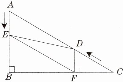 (2) $EF$ 与 $AD$ 平行且相等.证明:在 $\triangle DFC$ 中,$\angle DFC=90°$,$\angle C=30°$,$DC=2t$,$\therefore DF=t$,又 $\because AE=t$,$\therefore AE=DF$,$\because AB\perp BC$,$DF\perp BC$,$\therefore AB// DF$,$\therefore$ 四边形 AEFD 为平行四边形,$\therefore EF$ 与 $AD$ 平行且相等.
