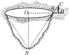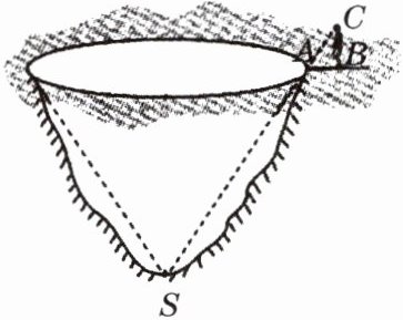 解:取圆锥底面圆心O,连接OS、OA,则$∠O = ∠ABC = 90^{\circ}$,$OS// BC$,