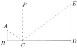 解:过点C作镜面的法线FC,由光学原理得$∠ECF = ∠ACF$.