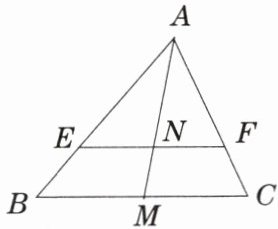 6. 如图,在 $\triangle ABC$ 中,$EF // BC$,$M$ 是 $BC$ 的中点,若 $\triangle AEF$ 的面积:梯形 $BCFE$ 的面积 $= 2:3$,且 $AM = 15$,则 $AN = $
