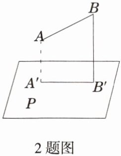 2. 如图,已知木棒$AB在投影面P上的正投影为A'B'$,且$AB = 20cm$,$\angle BAA' = 120^{\circ}$,则$A'B'$的长是(