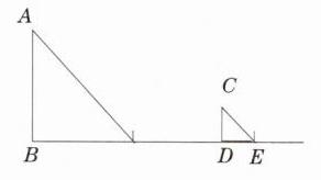 1. 小红想利用阳光下的影长测量学校旗杆$AB$的高度。如图,某一时刻,他在地面上竖直立一个2米长的标杆$CD$,测得其影长$DE = 0.4$米。