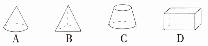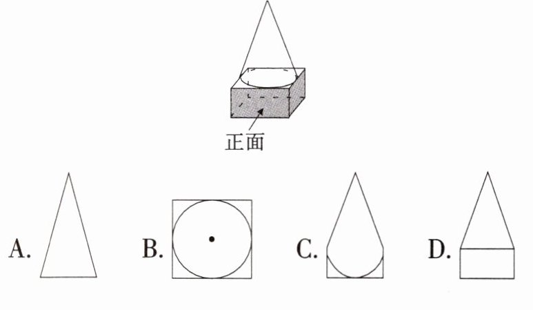 4. 下图是由一个长方体和一个圆锥体组成的立体图形,其主视图是( ).