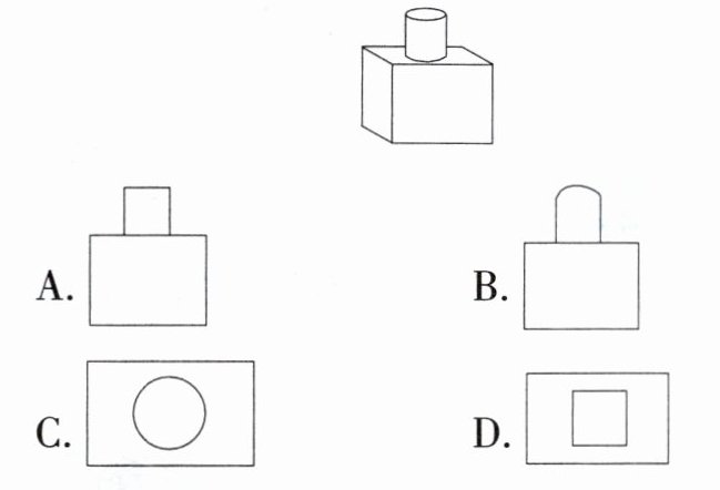5. 下图是一个圆柱和一个长方体组成的几何体,圆柱的下底面紧贴在长方体的上底面上,那么这个几何体的俯视图可能是( ).