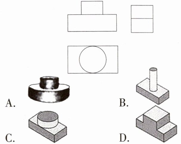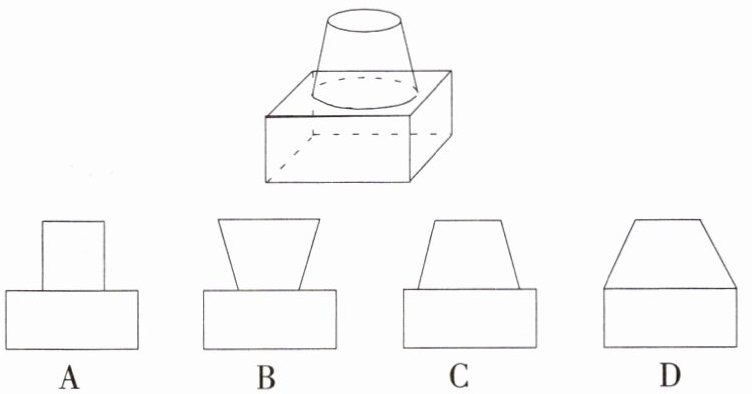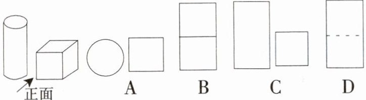 1. 小明从正面观察所示的两个物体,看到的是图中的(