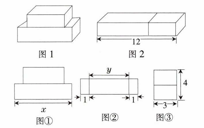 (2)请根据各图中所给的信息(单位:$cm$),计算出图 1 中上面的小长方体的体积。