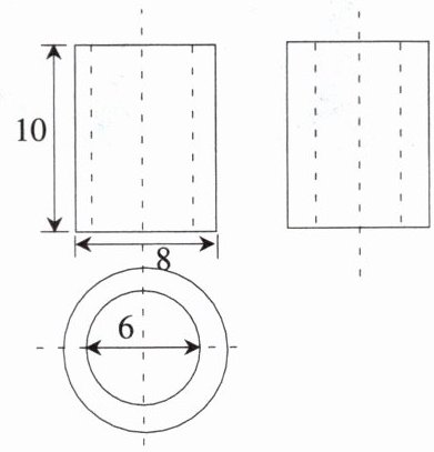已知$h = 10$,外圆直径$D = 8$,则外圆半径$R=\frac{D}{2}=4$;内圆直径$d = 6$,则内圆半径$r=\frac{d}{2}=3$。
