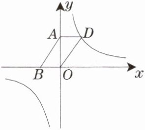 (2) 如图,若该反比例函数的图象经过平行四边形 $ ABOD $ 的顶点 $ D $,点 $ A $,$ B $ 的坐标分别为 $ (0, 3) $,$ (-2, 0) $. 求出函数解析式.