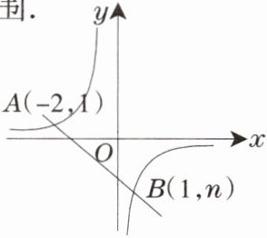 2. 如图,一次函数 $ y = kx + b $ 的图象与反比例函数 $ y = \frac{m}{x} $ 的图象交于 $ A $,$ B $ 两点.