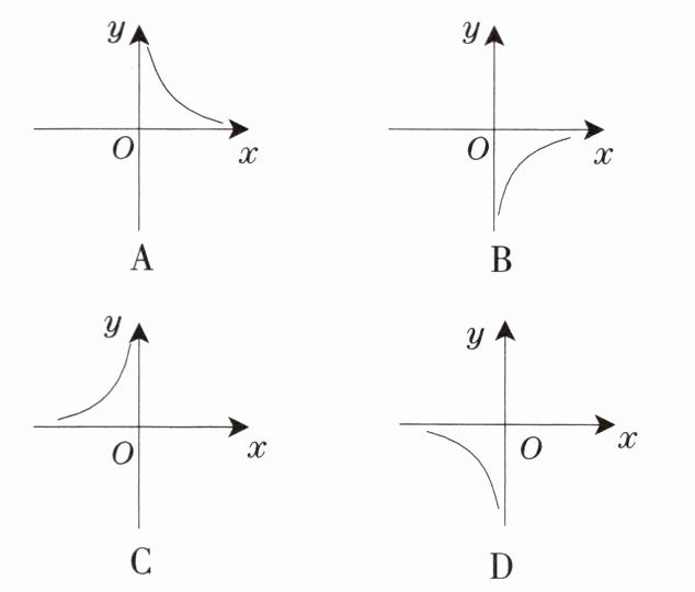 2. $ x < 0 $ 时,下列图象中表示函数 $ y = -\frac{1}{x} $ 的图象是(