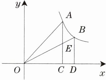 4. 过反比例函数 $ y = \frac{2}{x}(x > 0) $ 图象上任意两点 $ A $,$ B $ 分别作 $ x $ 轴的垂线,垂足分别为 $ C $,$ D $,连接 $ OA $,$ OB $,设 $ AC $ 与 $ OB $ 的交点为 $ E $,$ \triangle AOE $ 与梯形 $ ECDB $ 的面积分别为 $ S_1 $,$ S_2 $,则 $ S_1 $,$ S_2 $ 的大小关系为(