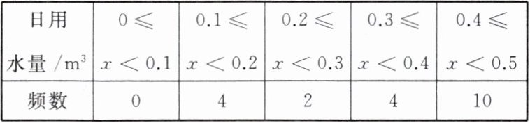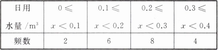 某家庭记录了未使用节水龙头 20 天的日用水量数据(单位:$m^3$)和使用了节水龙头 20 天的日用水量数据,得到频数分布表如下: