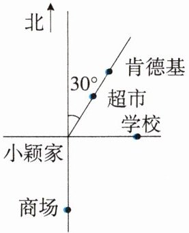 (2)百货超市在小明家的北偏西 $ 45° $ 的方向,距离小明家2.5千米的地方;