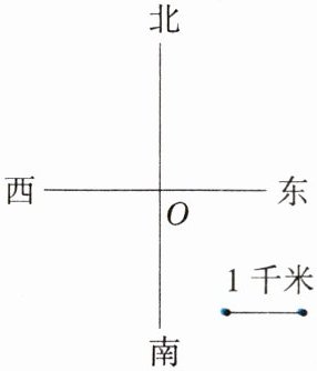 1. 如果小明家的位置在O点,请根据以下信息在图中分别画出医院、百货超市、学校的位置。