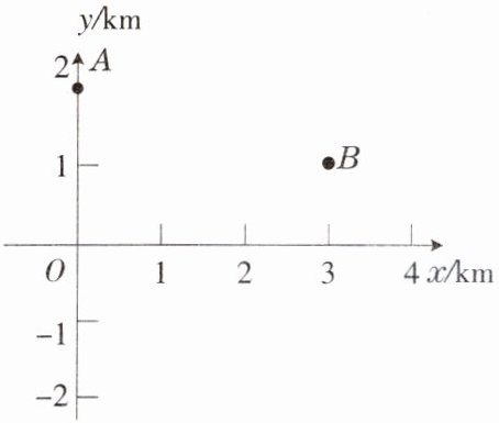 3. $ A $,$ B $ 两村在河边的同侧,以河边为 $ x $ 轴建立直角坐标系如图,则 $ A $,$ B $ 两村对应的坐标分别为 $ A(0,2) $,$ B(3,1) $,现要在河边 $ P $ 处修一个水泵站,分别向 $ A $,$ B $ 两村送水,点 $ P $ 应选在何处,才可使所用的水管最短?如果 1 个单位长度代表 $ 1\ km $,求出所需水管的长度(精确到 $ 0.01\ km $).
