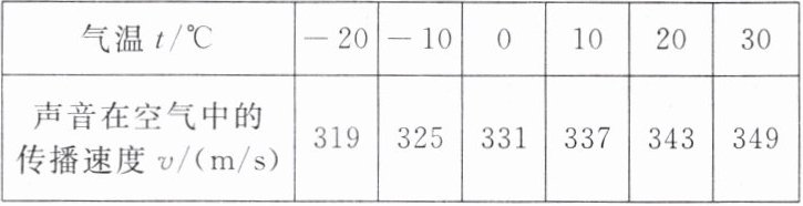 (2)从表中数据可知,气温每升高1°C,声音在空气中传播的速度提高了多少?