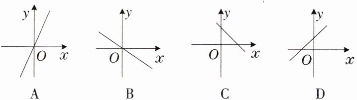 4. 已知正比例函数 $ y = kx(k \ne 0) $,当 $ x = - 1 $ 时,$ y = - 2 $,则它的图象大致是(
