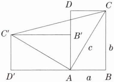 如图,火柴盒的一个侧面 $ABCD$(是一个长方形)倒下到 $AB'C'D'$ 的位置,连接 $CC'$,设 $AB = a$,$BC = b$,$AC = c$.