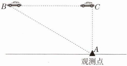 10. 规定:小汽车在城市街道上行驶速度不得超过 $70$ km/h.如图,一辆小汽车在一条城市街道上直道行驶,某一时刻刚好行驶到路对面车速检测仪 $A$ 处的正前方 $30$ m 的 $C$ 处,过了 $2$ s 后,测得小汽车与车速检测仪间距离为 $50$ m,这辆小汽车超速了吗?请说明理由.(参考数据转换:$1$ m/s $= 3.6$ km/h)
