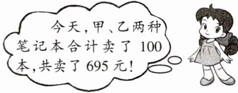 (1)设甲种笔记本销售x本,乙种笔记本销售y本,依题意得$\left\{\begin{array}{l} x+y=100\\ 8x+5y=695\end{array}\right. $,解得$\left\{\begin{array}{l} x=65\\ y=35\end{array}\right. $,答:甲种笔记本销售65本,乙种笔记本销售35本;
