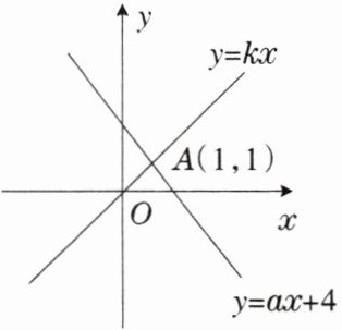 5. 如图,正比例函数 $ y = kx $ 和一次函数 $ y = ax + 4 $ 的图象相交于点 $ A(1,1) $,则方程组 $ \begin{cases} y = kx, \\ y = ax + 4 \end{cases} $ 的解为