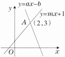 2. 如图,直线 $ y = ax - b $ 与直线 $ y = mx + 1 $ 交于点 $ A(2,3) $,则方程组 $ \begin{cases} ax - y = b, \\ mx - y = -1 \end{cases} $ 的解是(